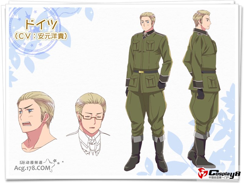原作漫画「黑塔利亚」是以世界历史为主轴,将多个国家以及该国的文化以及风土民情拟人化,主要以喜剧的四格及短篇为主。09年被动画化,动画版 以网络配送的形式播出。目前发型的相关的周边包含了同人CD、商业DRAMA、画集等。下面我们来看看新系列的人设图吧!对比之前的4季,新一季的人设在 用色上更加丰富了,而且大家都变大了的样子……不知作为观众的诸君更喜欢哪种设定呢?
