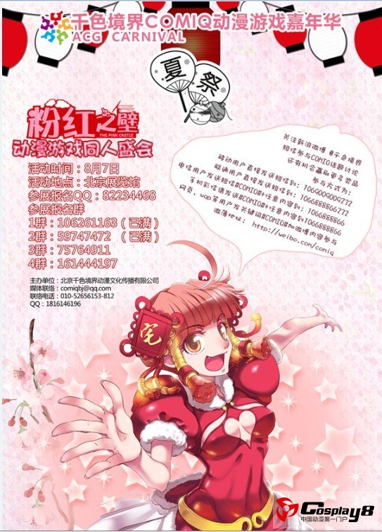 千色境界COMIQ动漫游戏嘉年华暨第二届“粉红之壁”动漫游戏同人盛会火热来袭!全程精彩活动引爆夏日!8月7日!北京展览馆!老时间,老地方,全新精彩,等你光临!