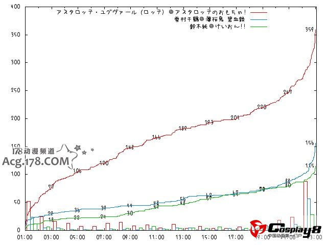日萌本战一回战A组第四场中04和08组都很有戏剧性,04组「天降之物」的卡奥斯全天都以较大的差距保持着领先,而在晚上,「虎兔」的卡莉娜开始奋起直追,几度反超卡奥斯,不过卡奥斯也表现出强大的爆票能力,最终保住了头名位置。08组的情况基本相同,结局却不同,「甜蜜吻痕」的七咲逢白天一直保持着优势,但到晚上「STEINS;GATE」的牧濑红莉栖带着香菜妹子的怨念与七咲逢纠缠在一起,并在结束时以4票的微弱优势上演了逆转剧。12组就没前面两组那么激烈了,整场以露蒂压倒性的优势结束,并且暂时创造了本战中最大203票的比分差。
