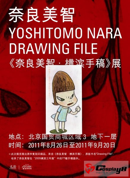 “DRAWING FILE”《奈良美智•横滨手稿》展将在北京国贸商城拉开序幕。创造了在国内热卖的玩具『梦游娃娃』的日本殿堂级艺术大师奈良美智将在展览中展示77幅原作复刻品,,梦游娃娃等艺术周边也将亮相展出。展览名称“DRAWING FILE”来自《奈良美智•横滨手稿DRAWING FILE》的原版书名,是首部引进中国的奈良美智画集。