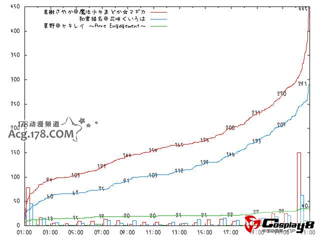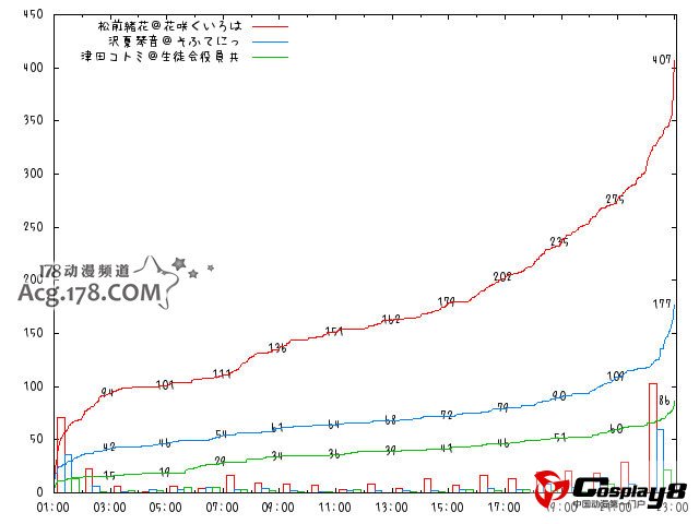 日萌本战一回战E组的第3场,看似毫无悬念,但却是很激烈的一场。03组「魔法少女小圆」美树沙耶加对阵「花开物语」和仓结名,因为和仓结名有着本场11组松前绪花的连记加成,所以比赛中双方的战斗如火如荼,面票数互有逆转,最后沙耶加依靠晚上的持续爆票终于拉了开差距锁定胜局。最后,07组高原步美以微弱优势小胜菲利斯•喵喵晋级,而11组松前绪花则是大比分横扫对手,并且以230的票数差,打破了A组露蒂保持的本战203票的最大比分差纪录。