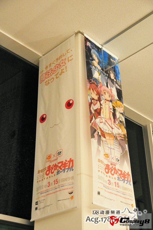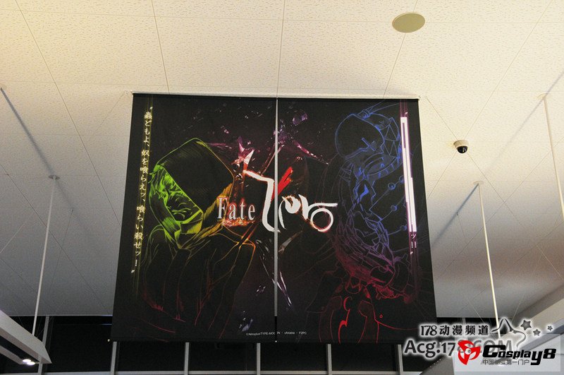 机场主厅上悬挂的超大海报,从左至右为偶像大师、マチ★アソビvol.7宣传、学美向前冲及Fate/zero