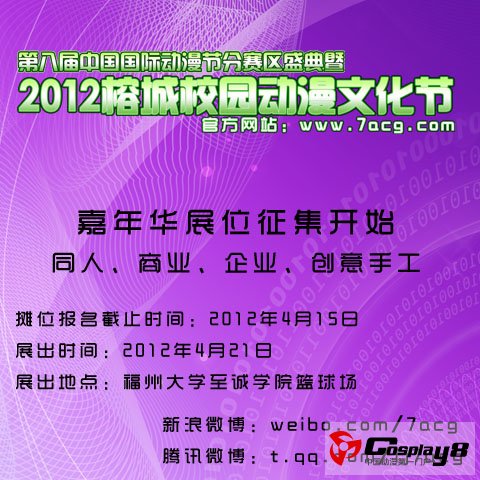 业界盛典,纷至沓来!中国国际动漫节福州分赛区,亚洲青年动漫大赛福建区域征稿,海峡两岸信息服务创新大赛前置活动即将汇聚2012年榕城校园动漫文化节,活动内容精彩纷呈,2012年4月榕漫之约。