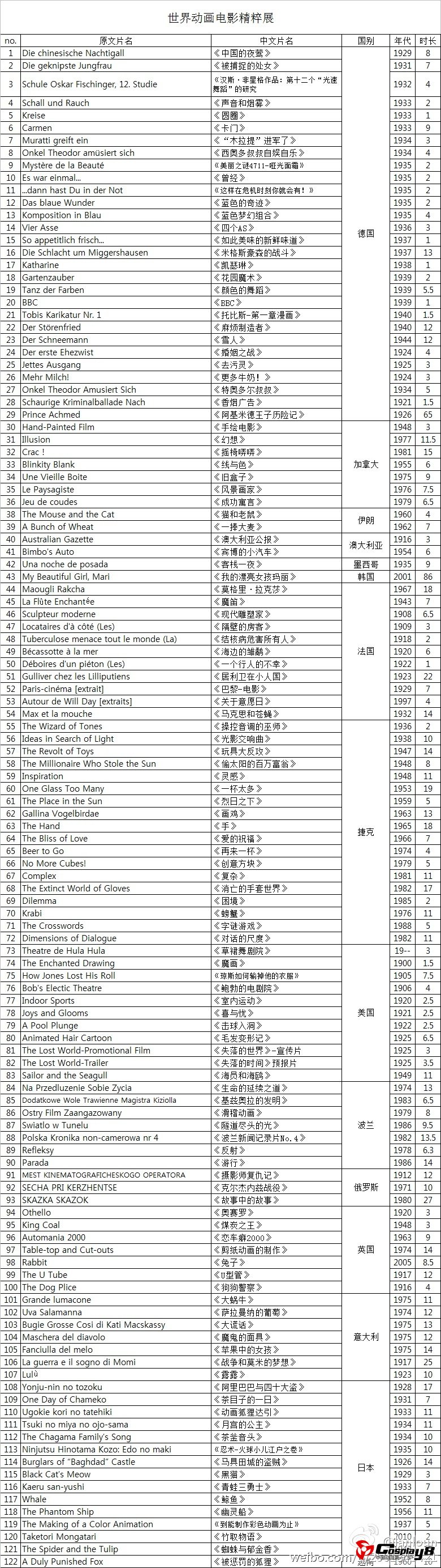 FIAF世界动画电影精粹展将于4月23日-28日在中国电影资料馆艺术影院举办。截至今日已有来自15个国家的20多家电影资料馆的百余部动画影片确定参加此次展映活动。参展的绝大部分影片为各国电影资料馆保存、修复的早期动画短片。希望大家在欣赏影片的同时也能体会到影片保存的重要意义。现参展的影片片目已公布,基本上为各国压箱底儿的早期动画电影,难得一见十分珍贵,将以多姿多彩的形式(如现场乐队配乐)奉献给大家,放映场次大约分为十场,具体随后公布。