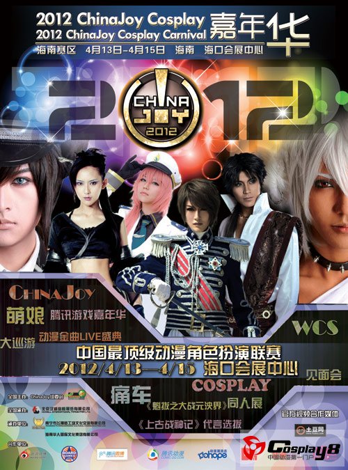 2012 ChinaJoy Cosplay嘉年华华南赛区海南地区选拔赛暨2012海口动漫游戏嘉年华,将于2012年4月13日至15日在海口会展中心拉开华丽大幕! 汇聚海南最强实力的Cosplay选手、电玩游戏、动漫周边、动画电影、时尚痛车、全国知名的动漫嘉宾见面会、土豆动漫Cosplay PV摄制等,已经让这届动漫盛会倍受关注,加上中国最顶级赛事Chinajoy Cosplay嘉年华的开赛,这3天时间必将让海南的漫迷人充分享受动漫游戏的饕餮盛宴!