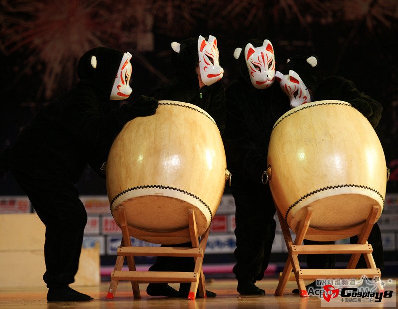由“风林火山”带来的以一款热门音乐类游戏《太鼓达人》为蓝本的cos剧《太鼓达人》,该社团是去年ChinaJoy Cosplay嘉年华北京赛区“秘银之星”大奖的获得者,去年的一曲“初音家族”的《蝶》,让很多fans们久久不能忘怀,今年的《太古达人》更是让大家不失所望,在台上不但演出了训练曲目,还有“咚”和“呛”与敌人的对战,coser们在舞台上的完美配合可以看出他们在台下的辛苦努力,三个人打四个鼓而且没有不协调的声音出现,不是一天两天就能练好的。他们也是当天比赛黑子最多的社团,节拍的红蓝都是由黑子们来完成表现的。该社团获得了当天比赛的第一名。
