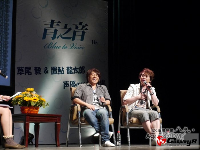 当天的草尾身着白色T恤,外面套了一件低调的灰色衬衫,而置鲇一如既往地穿了一件招牌式的相当花哨的衬衫,不过在外面套上了一件白色的西装。两位用中文和日文向大家打过招呼后,EVENT便正式开始了。(草尾:刚刚把我所有会说的中文全部说完了XSK)