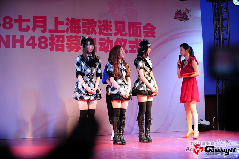 日本国民偶像天团AKB48成员梅田彩佳、菊地彩香和藤江丽奈于7月12日空降魔都,作为2012年中国国际动漫游戏博览会(简称:CCG)嘉宾亲临现场。在第一天上午10点半开始的AKB48的粉丝见面会上,三名成员被场下大量粉丝们的热情所感动。作为这次三名成员来上海最重要的目的,她们在现场用毛笔写下“SNH48招募开始!!”几个大字,正式启动了中国姐妹团SNH48的招募。