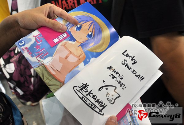 从全国各地慕名而来的读者们热情澎湃,女主持人现场演唱的的幸运星动画主题曲“拿去吧!水手服”更是掀起了一股股热浪,为签售活动画上了锦上添花的一笔!