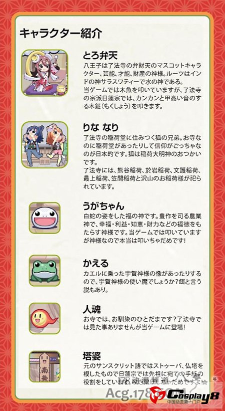 在这个万事万物皆可萌化的时代,就算是寺庙这种传统意义上的空门净土,也一样可以萌的一塌糊涂。位于11区八王子市日吉町的松荣山了法寺是一间 400多年的古刹,寺庙建于1490年,是西八王子创建的日莲宗的寺院,供奉着「八王子七福神」之一的新护弁财天。早在几年前,这座佛寺就在寺院内开设女仆咖啡厅,还举办过与女仆一起做年糕的活动(喂!你们是和尚吗?),甚至还推出了用萌化的「了法寺」形象以及游戏作品。