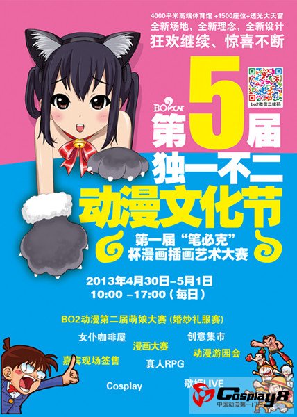 本次活动不但首次引人多项互动游戏,众多优秀社团及动漫爱好者,更有大量同人作品,同人本,DIY周边、第二届萌娘大赛(婚纱礼服赛)、歌姬LIVE、动漫游园会、等众多新奇有趣的项目等你体验。