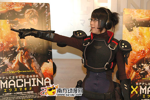 被赞誉为“眼镜娘”的人气杂志模特时东亚美(20岁),于10月8日参加剧场版动画《EX MACHINA》(荒牧伸治监督)的PR见面会,并担任秋叶原人气女仆茶馆“Pinafore”的一日店长。时东亚美身穿动画主人公的bondage风格战斗服,手持枪械地表示“这套衣服穿好后,下半身的样式让我很害羞,不过,现在是强烈地习惯了的心情”,真是活脱脱的一个美女大兵。