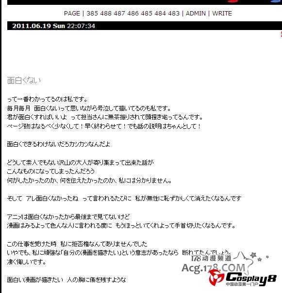 山本宽打造的TV动画「Fractale」,不仅以破纪录的极低收视率收场,而且BD版的销量也是惨不忍睹,再加上宽叔的各种卖萌,近期他不仅遭到观众们的抨击,就连和他一同制作这部动画的队友,都表示十分不满。如今,「Fractale」的漫画版依然还在连载中,而担任漫画版作画的赤﨑睦美最近也在网络上抱怨,这部作品太无聊了,每月每月都让我制作这样的作品,简直快让我嚎啕大哭出来了。