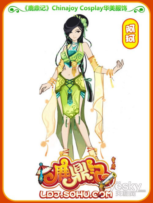 将在2008 Chinajoy上扮演《鹿鼎记》的七大女主角,也就是韦小宝的七位老婆大人将在7月14日出炉,想必台下的各位观众早已心急如焚,希望自己心目中的美丽“老婆”能够早日获选吧,那就赶快抓紧最后两天时间为她们疯狂投票,说不定你和她就能在上海Chinajoy展会上相遇哦。都说美女也要美衣相衬,《鹿鼎记》早已为七位老婆大人准备了精心制作的Cosplay华美服饰,今天首次公开7套美服的设计图,请大家瞧一瞧看一看,到时候千万别认错老婆咯。