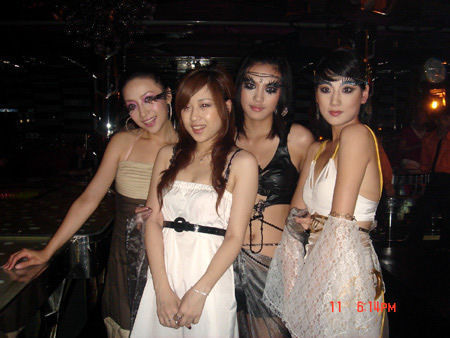 两位女神与时尚MM合影