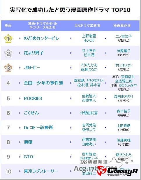 日本公信榜ORICON前几日抽选了1000名网友进行投票,从故事、还原度和亲和力几方面选出了最佳动漫改编电视剧,二之宫知子原作,由上野树里和玉木宏出现的《交响情人梦》荣登榜首。你心目中最具动漫改编电视剧是什么呢?