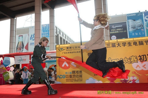 昨天下午,第三届穗港澳ACG动漫游戏展cosplay初赛携手天河电脑城大学生电脑节在大学城广大商业区举行,35支cosplay队伍展开角逐。其中一支名为art-cos的队伍将广州五羊传说融入表演创作出了《穗城》舞台剧,吸引了众多动漫迷的目光。