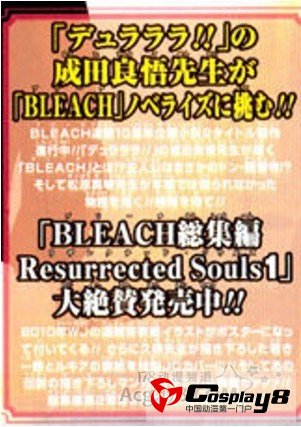 在最新一期《周刊少年Jump》上爆出一则新闻让小编大跌眼镜,为了纪念《死神》连载10周年,《无头骑士异闻录》及《永生之酒》的原作者成田良悟先生居然要为漫画《死神》写作小说版。目前传闻《死神》小说版的主角将是观音寺,不知道擅长写多角色群像剧的成田良悟写出的《死神》的小说版会是什么样的呢?希望可以挽救一些《死神》现在低迷的人气吧。