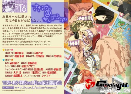 预定于来年1月开始在TBS、BS-TBS上放送的TV动画「锁锁美同学@提不起劲」,原作是由日日日创作、左负责绘制插图的同名轻小说作品,单行本至今 已发行到了第9卷。作品主要讲述的是就读于樱之花咲夜学园1年级的家里蹲少女月咏锁锁美,与负责其饮食起居且拥有奴隶体质的哥哥月咏神臣在简单的生活中, 陷入了众神所引发的异常现象之中,此外加上个性鲜明的邪神三姐妹的登场,看似日常的非日常生活就此展开了。继本作TV动画的主制作班底、主要声优阵容等情 报披露后,近日其制作班底追加发表!