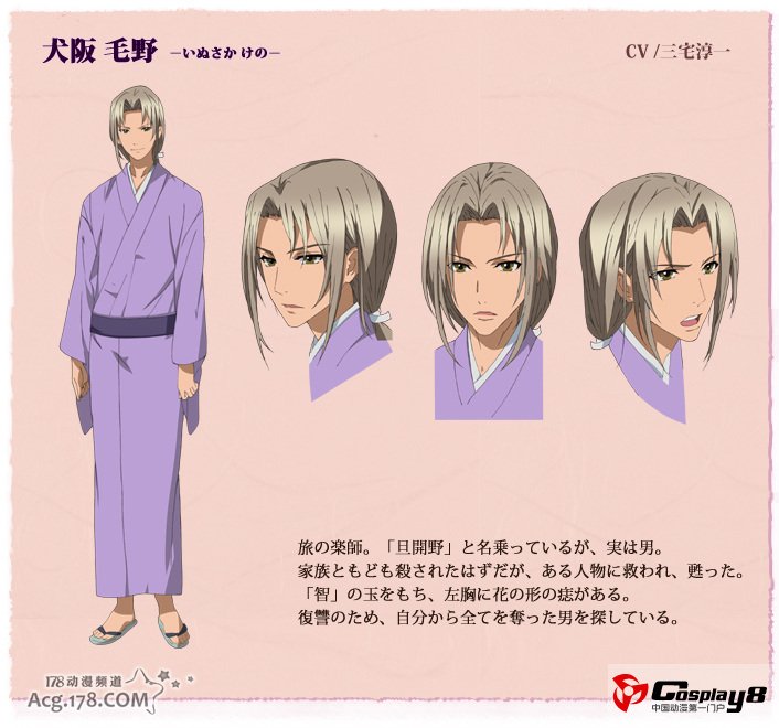 为报仇练就一身好剑法,第一次见到庄介和信乃的时候,将庄介当做苍而不打不相识。一心想找苍报仇。目前住在的古那屋。牡丹痣在其左胸。#p#副标题#e#
